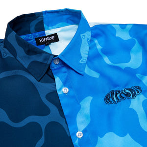 Rip N Dip Soho Button Up Shirt in a two tone blue camo pattern.